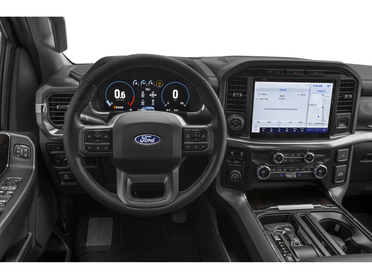 CARFAX One-Owner. This vehicle comes with the following features and options : Equipment Group 501A Mid (Onboard 400W Outlet, Radio: B&O Sound System by Bang & Olufsen, and Universal Garage Door Opener), FX4 Off-Road Package (Tray Style Floor Liner (47W)), Lariat Chrome Appearance Package (6 Bright Polished Running Board, Chrome 2-Bar Grille w/4 Minor Bars, Chrome Door & Tailgate Handles w/Body-Color Bezel, Chrome Single-Tip Exhaust, Chrome Skull Caps on Exterior Mirrors, and Wheels: 18 Chrome-Like PVD), Trailer Tow Package (Class IV Trailer Hitch Receiver, Integrated Trailer Brake Controller, and Pro Trailer Backup Assist), 4WD, 18 Machined-Aluminum Wheels, 360 Degree Camera, 4-Wheel Disc Brakes, 7 Speakers, ABS brakes, Adjustable pedals, Air Conditioning, Alloy wheels, AM/FM radio: SiriusXM with 360L, Auto High-beam Headlights, Auto Start-Stop Removal, Auto-dimming door mirrors, Auto-dimming Rear-View mirror, Automatic temperature control, Brake assist, Bumpers: chrome, Compass, Connected Navigation & SiriusXM w/360L Removal, Delay-off headlights, Driver door bin, Driver vanity mirror, Dual front impact airbags, Dual front side impact airbags, Electronic Stability Control, Emergency communication system: SYNC 4 911 Assist, Extended Range 36 Gallon Fuel Tank, Exterior Parking Camera Rear, Front anti-roll bar, Front Center Armrest w/Storage, Front dual zone A/C, Front fog lights, Front reading lights, Front wheel independent suspension, Fully automatic headlights, Heated door mirrors, Heated front seats, Illuminated entry, Leather-Trimmed 40/20/40 Front Seat, LED Sideview Mirror Spotlights, Low tire pressure warning, Memory seat, Occupant sensing airbag, Outside temperature display, Overhead airbag, Overhead console, Panic alarm, Passenger door bin, Passenger vanity mirror, Pedal memory, Power door mirrors, Power driver seat, Power passenger seat, Power steering, Power windows, Radio data system, Radio: AM/FM SiriusXM w/360L, Rear reading lights, Rear seat center armrest, Rear step bumper, Rear window defroster, Remote keyless entry, Security system, Speed control, Speed-sensing steering, Split folding rear seat, Steering wheel mounted audio controls, SYNC 4 w/Enhanced Voice Recognition, Tachometer, Telescoping steering wheel, Tilt steering wheel, Traction control, Trip computer, Turn signal indicator mirrors, Variably intermittent wipers, Ventilated front seats, Voltmeter, and Wheels: 20 Chrome-Like PVD. 4WD.