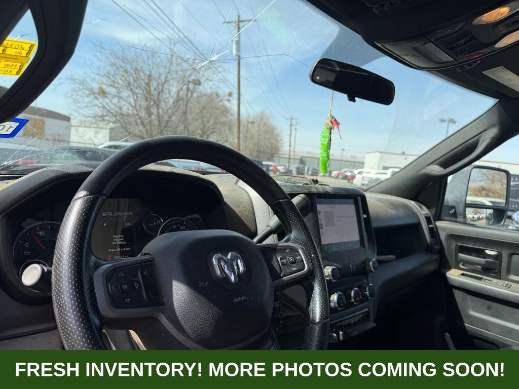 Clean CARFAX. CARFAX One-Owner. This vehicle comes with the following features and options : Chrome Appearance Group (Bright Front Bumper, Bright Rear Bumper, Bright Wheel Skins, Center Hub, Chrome Grille Surround, Chrome Headlamp Bezels, and Matte Black Mesh w/Chrome Grille), Protection Group, Quick Order Package 2HA Tradesman, Tradesman Level 2 Equipment Group (2 Way Rear Headrest Seat, 4 Way Front Headrests, 40/20/40 Split Bench Seat, Black Exterior Mirrors, Carpet Floor Covering, Cloth 40/20/40 Bench Seat, Exterior Mirrors Courtesy Lamps, Exterior Mirrors w/Heating Element, Exterior Mirrors w/Supplemental Signals, Front & Rear Floor Mats, Front Armrest w/Cupholders, Manual Adjust 4-Way Driver Seat, Manual Adjust 4-Way Front Passenger Seat, Manual Folding Exterior Mirrors, Manual Telescoping Mirrors, Mirror Running Lights, Power Adjust Mirrors, Power Heat Fold Telescopic Mirrors, Power-Adjustable Convex Aux Mirrors, Rear Folding Seat, Rear Power Sliding Window, Rear Window Defroster, Remote USB Port - Charge Only, and Storage Tray), 115V Auxiliary Front Power Outlet, 3.73 Axle Ratio, 4-Wheel Disc Brakes, 400W Inverter, 4G LTE Wi-Fi Hot Spot, 50 Gallon Fuel Tank, 6 Speakers, 6000# Front Axle w/Hub Ext, 8.4 Touchscreen Display, ABS brakes, Active Noise Control System, Air Conditioning, All R1 Low Radios, All Radio Equipped Vehicles, AM/FM radio, Apple CarPlay, Bluetooth® Handsfree Phone & Audio, Box & Rear Fender Clearance Lamps, Brake assist, Clearance Lamps, Compass, Connectivity - US/Canada, Delay-off headlights, Driver door bin, Dual front impact airbags, Dual front side impact airbags, Dual Rear Wheels, Electric Shift-On-The-Fly Transfer Case, Electronic Stability Control, Electronically Controlled Throttle, Emergency communication system: SiriusXM Guardian, Exterior 115V AC Outlet, For Details Visit DriveUconnect.com, For More Info, Call 800-643-2112, Front anti-roll bar, Front Center Armrest w/Storage, Front License Plate Bracket, Front reading lights, Fully automatic headlights, Global Telematics Box Module (TBM), Google Android Auto, GPS Antenna Input, HD Vinyl 40/20/40 Split Bench Seat, Illuminated entry, Integrated Center Stack Radio, Integrated Voice Command w/Bluetooth®, Low tire pressure warning, MOPAR Front & Rear Rubber Floor Mats, MOPAR Spray In Bedliner, Occupant sensing airbag, Outside temperature display, Overhead airbag, Overhead console, Panic alarm, ParkView Rear Back-Up Camera, Passenger door bin, Passenger vanity mirror, Power steering, Power windows, Radio data system, Radio: Uconnect 3 w/5 Display, Radio: Uconnect 5 w/8.4 Display, Rear step bumper, Rear Wheelhouse Liners, Remote keyless entry, Selectable Tire Fill Alert, SiriusXM Radio Service, SiriusXM Satellite Radio, Speed control, Tachometer, Tilt steering wheel, Tip Start, Traction control, Trailer Brake Control, Trailer Light Check, Variably intermittent wipers, Voltmeter, Wheels: 17 x 6.0 Steel Argent, Wheels: 17 x 6.0 Steel Chrome Clad, and Wheels: 18 x 8.0 SteeL.