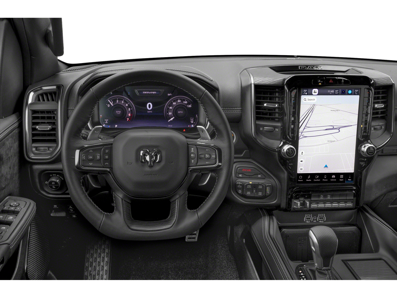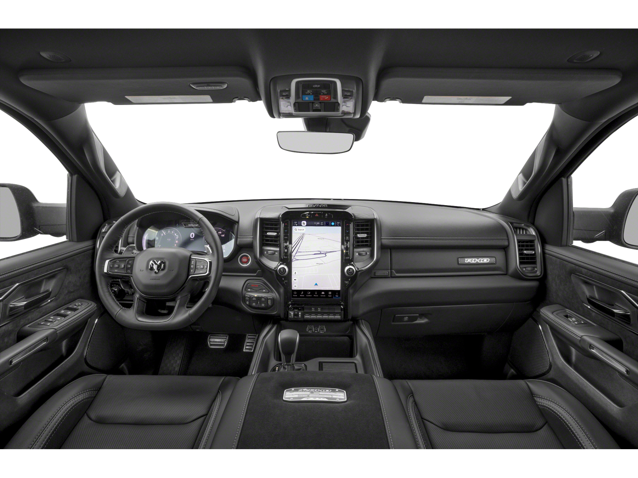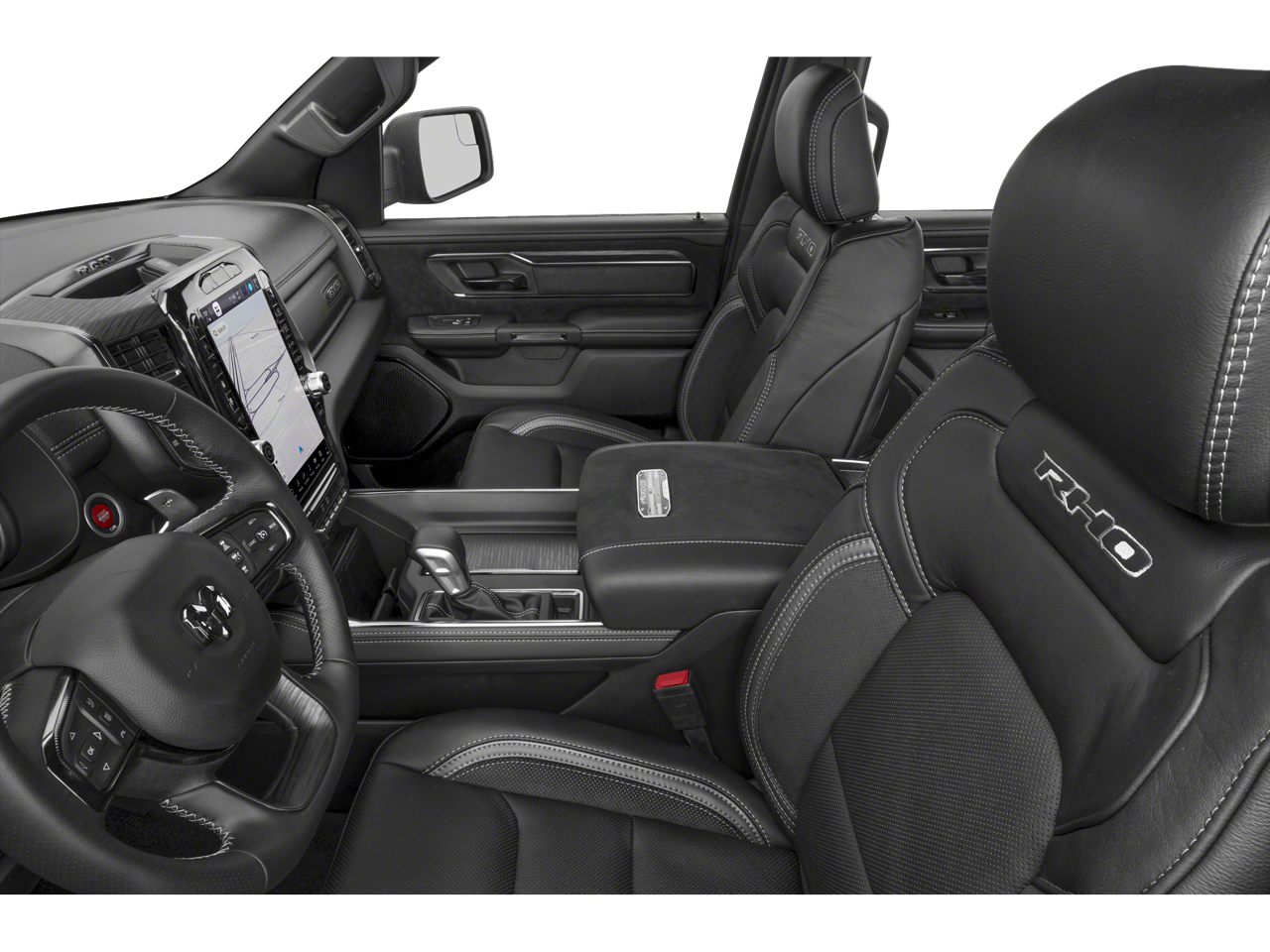CARFAX One-Owner. This vehicle comes with the following features and options : Bed Utility Group (Exterior 115V AC Outlet, MOPAR 4 Adjustable Cargo Tie-Down Hooks, MOPAR Deployable Bed Step, and MOPAR Spray In Bedliner), Quick Order Package 22Y RHO, 10 Speakers, 3.92 Rear Axle Ratio, 4-Wheel Disc Brakes, 4G LTE Wi-Fi Hot Spot, ABS brakes, Adaptive suspension, Adjustable pedals, Air Conditioning, Alloy wheels, AM/FM radio: SiriusXM with 360L, Apple CarPlay, Apple CarPlay/Android Auto, Auto High-beam Headlights, Auto Power-Folding Mirrors, Auto-dimming door mirrors, Auto-Dimming Exterior Driver Mirror, Auto-dimming Rear-View mirror, Automatic temperature control, Brake assist, Compass, Connected Travel & Traffic Services, Connectivity - US/Canada, Delay-off headlights, Driver door bin, Driver vanity mirror, Dual front impact airbags, Dual front side impact airbags, Electronic Stability Control, Exterior Mirrors Courtesy Lamps, Exterior Mirrors w/Heating Element, Exterior Mirrors w/Supplemental Signals, Flareside Box, Front anti-roll bar, Front Bucket Seats, Front Center Armrest w/Storage, Front dual zone A/C, Front fog lights, Front License Plate Bracket, Front reading lights, Front wheel independent suspension, Fully automatic headlights, Garage door transmitter, Google Android Auto, GPS Navigation, HD Radio, Heated door mirrors, Heated front seats, Heated steering wheel, Illuminated entry, Integrated Voice Command w/Bluetooth®, Leather Shift Knob, Leather steering wheel, Leather Trimmed Bucket Seats, Low tire pressure warning, Navigation System, Occupant sensing airbag, Outside temperature display, Overhead airbag, Overhead console, Panic alarm, ParkView Rear Back-Up Camera, Passenger door bin, Passenger vanity mirror, Power door mirrors, Power driver seat, Power passenger seat, Power steering, Power windows, Radio data system, Radio: Uconnect 5 Nav w/12.0 Display, Rear reading lights, Rear seat center armrest, Rear step bumper, Rear window defroster, Remote keyless entry, Security system, Speed control, Split folding rear seat, Sport steering wheel, Steering wheel mounted audio controls, Tachometer, Telescoping steering wheel, Tilt steering wheel, Traction control, Trip computer, Turn signal indicator mirrors, USB Host Flip, Variably intermittent wipers, Voltmeter, and Wheels: 18 x 9 Black Paint/Polish Aluminum.